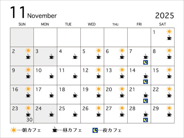 2025年11月の営業日をお知らせいたします。
